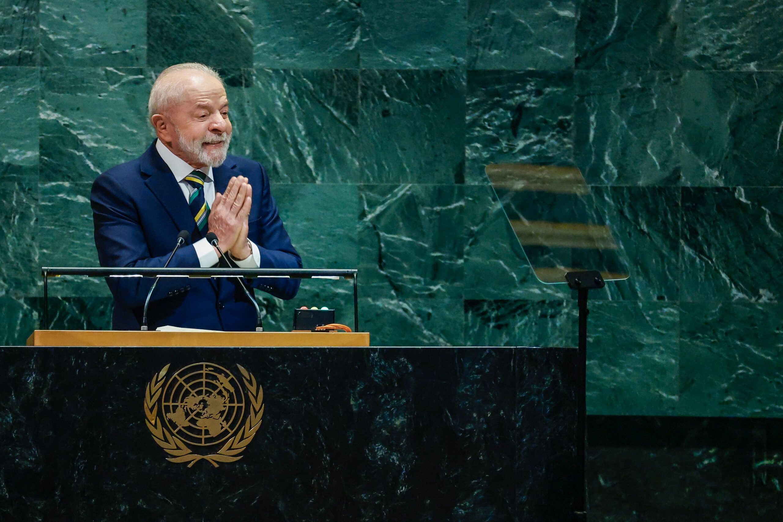 Ao se referir ao conflito em Gaza, ele voltou a denunciar a postura pró-genocídio dos Estados Unidos nos organismos multilaterais. Segundo Lula, um Estado palestino “independente e integrado à comunidade internacional (…) é a solução defendida por mais de 150 membros da ONU, reafirmada ontem, aqui neste mesmo plenário, mas obstruída por um único veto. É lamentável que o presidente Mahmoud Abbas tenha sido impedido pelo país anfitrião de ocupar a bancada da Palestina nesse momento histórico”.